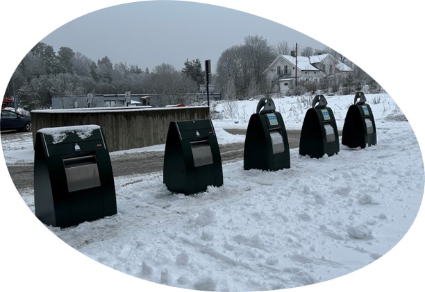 På Mortensrud i Oslo kommune, er nå to stk. nedgravde containere byttet med Cameleon. De tre containerne til høyre i bilde er eldre modeller. De to nye modellene til venstre er utstyrt med vår mest populære innkasttopp SULO Iceberg Max 3. I tillegg er det nytt løftesystem, sikkerhetsplattform og innvendig 5 m3 stålbeholder. Anlegget har fått en tidsriktig og moderne løsning som er både miljø- og investeringsvennlig og md forlenget levetid.