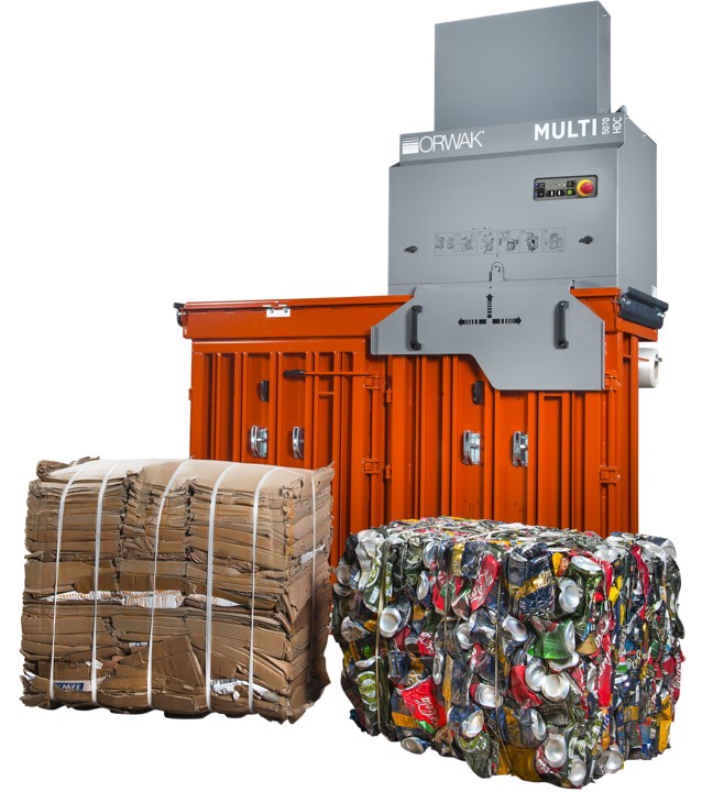 Bølgepapp og kartong, plastfolie, trepaller, stroppebånd, metallbokser og makuleringspapir fra kontoret, lageret, butikken eller kjøpesenteret? Håndteres det flere typer avfall i bedriften og mangler det plass for en tradisjonell kildesorteringsløsning? Mange er i eksakt samme situasjon, men det finnes løsninger som gir mulighet til å sortere og komprimere avfallet direkte på stedet: Orwak Multi-flerkammer emballasjepresser!