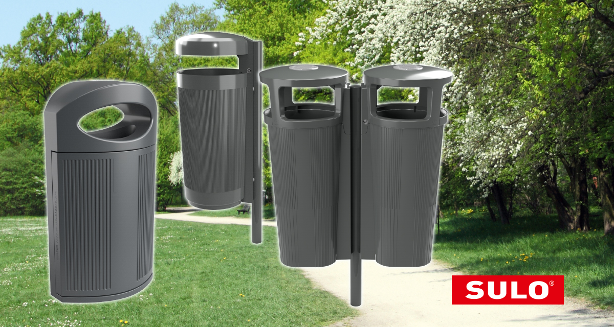 Flere avfallsbeholdere fra SULO for det offentlige rom – flere avfallsbeholdere kan monteres på samme stolpe