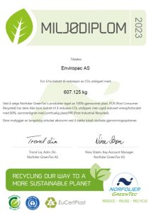 Bidro vår sekkesalg i gjenvunnet plast et redusert CO2 utslipp på 604 752 kg