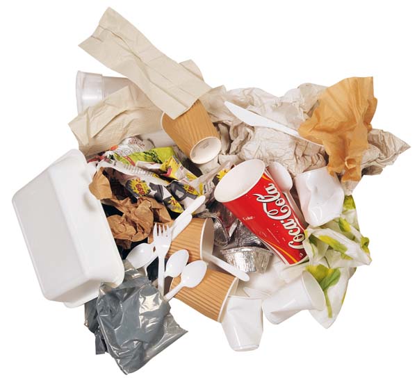 Består av papir, engangsartikler, plastavfall, etc.