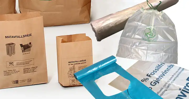 Poser og sekker bør være optimalt tilpasset avfallsbeholderen, som reduserer materialforbruket per tømming, gir lavere kostnader, bedre logistikk og mindre CO2 utslipp knyttet til transport.