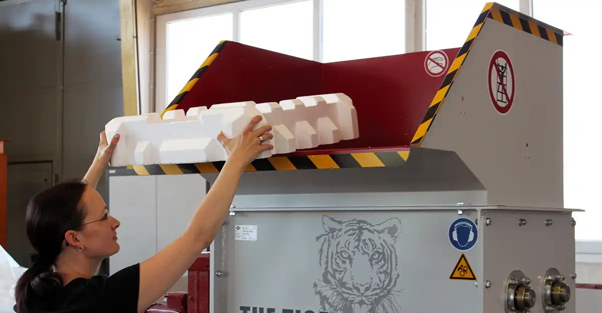 Tyske HEGER er verdenskjent for sine spesialløsninger til komprimering av ekspanderende materiale som EPS og skumplast. På EPS (isopor), som består av 98 % luft, får vi en komprimeringsgrad på 40:1.