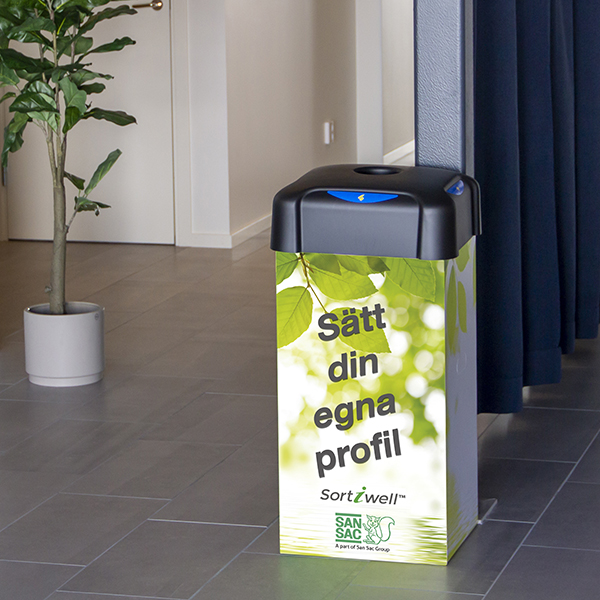 Du stabler innkasttoppene enkelt når de ikke er i bruk, og kobler flere beholdere sammen til en komplett kildesorteringsstasjon. Legg til fraksjonsmerker for tydelig sortering.