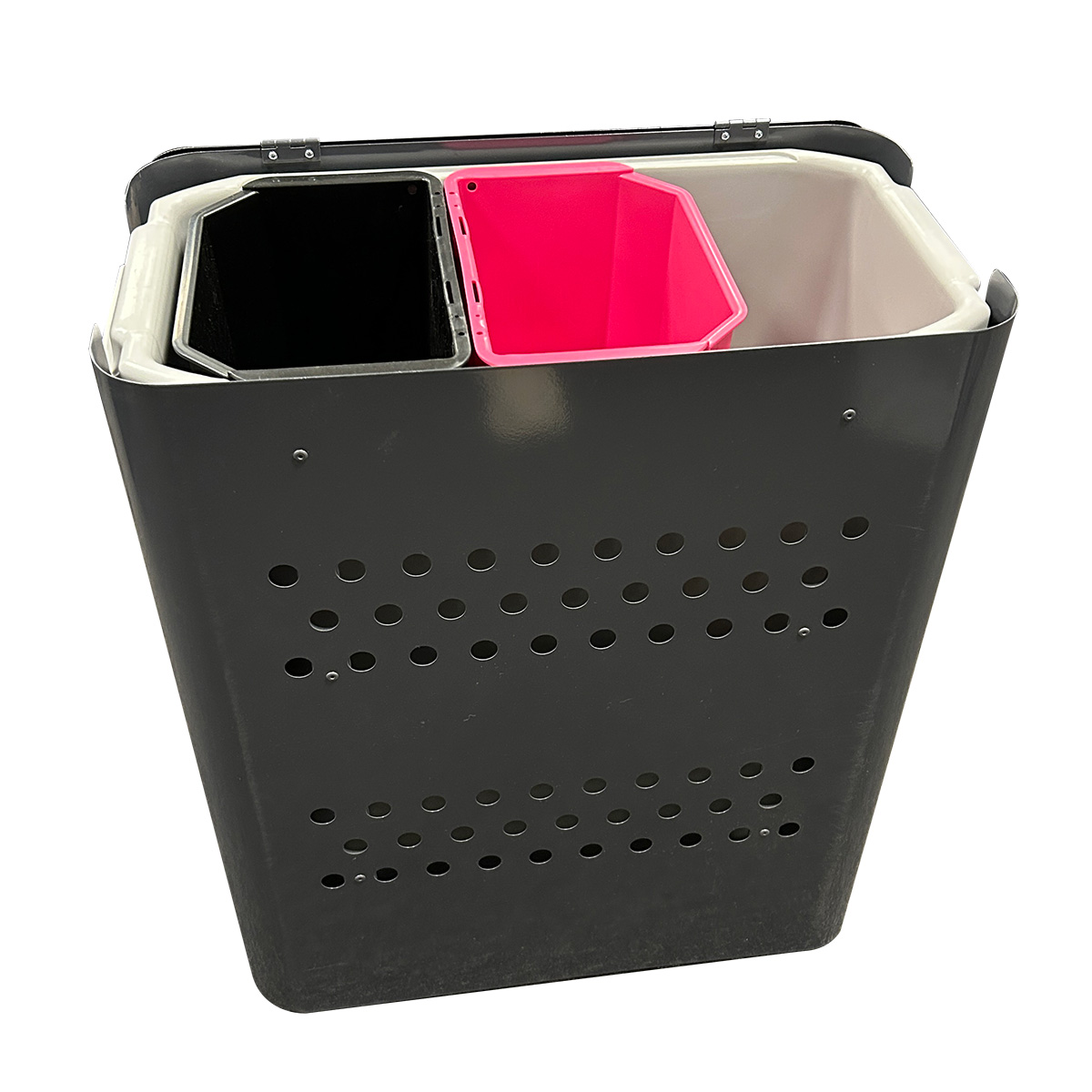 Sorteringsløsning med innvendig vaskbare beholdere av plast for sorteringa av tre fraksjoner