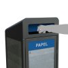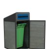 Zürich avfallsskjuler er produsert med paneler (25 mm tykkelse) som består av 70 % resirkulert plast. Konstruksjon med fugeelementer er i galvanisert stål (1,5/3 mm tykkelse). Velg om dør skal plasseres i fromt eller på bakside. Kan leveres m/ lås på dør.