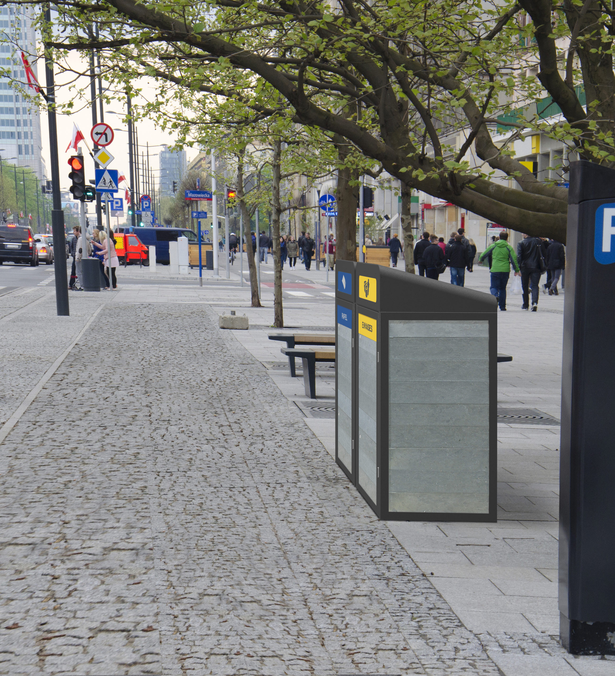 ZÜRICH er et helt nytt avfallskonsept som passer inn i de fleste uteområder: By- og parkmiljø, skoler, idrettsanlegg og andre offentlige steder. Zurich kan stå som en egen frittstående avfallsbeholdere eller plasseres i rekke til en kildesorteringsstasjon. Kan benyttes både innen- og utendørs ved normale værforhold. Utforming med skrått tak sørger for at regn/snø ikke samler seg her. Ved ekstreme værforhold som høy saltholdighet, temperatur eller fuktighet, kan en ekstra spesialbehandling anbefales.