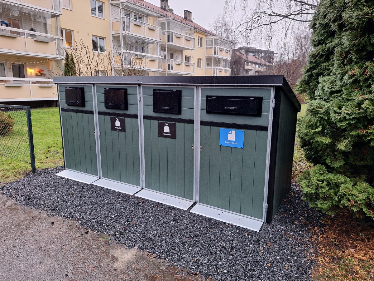 Miljøskapene er utviklet for å skape triveligere og sikrere utemiljø i bygårder, borettslag, hytteområder, returpunkter, skoler, gater, torg strender etc. Skapene er tilpasset standard plast 2-/4-hjuls avfallsbeholdere fra 240 – 1000 liter.