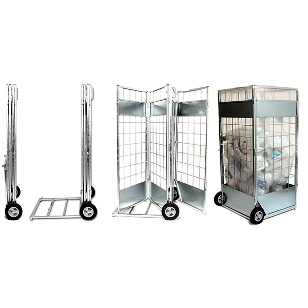 Sammenleggbart og solid. Uunnværlig til daglig drift på bensinstasjonene. Benytter 800 liters sekker.