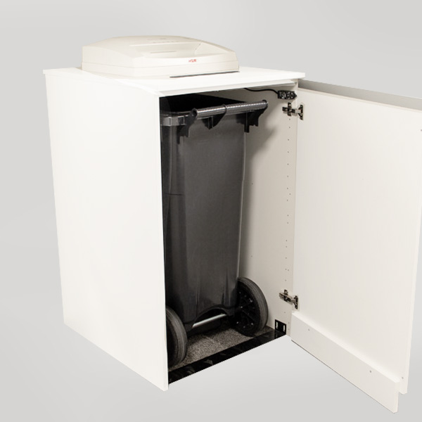 Stilrent og kompakt kildesorteringsmøbel for makulering