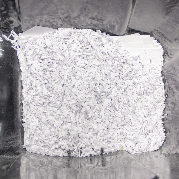 En 190 liters beholder (kjøpes separat) samler opp papirbitene.