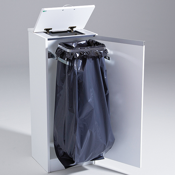 Skapet har uttrekkbart, forkrommet sekkeholder med klemring og ventilert bunn. For bruk sammen med 60-125 liters sekk.