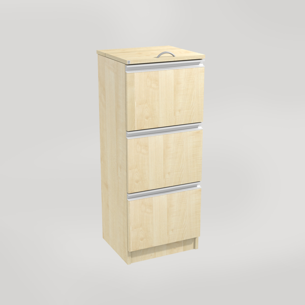 Kildesorteringsmøbel med tre skuffer og lokk