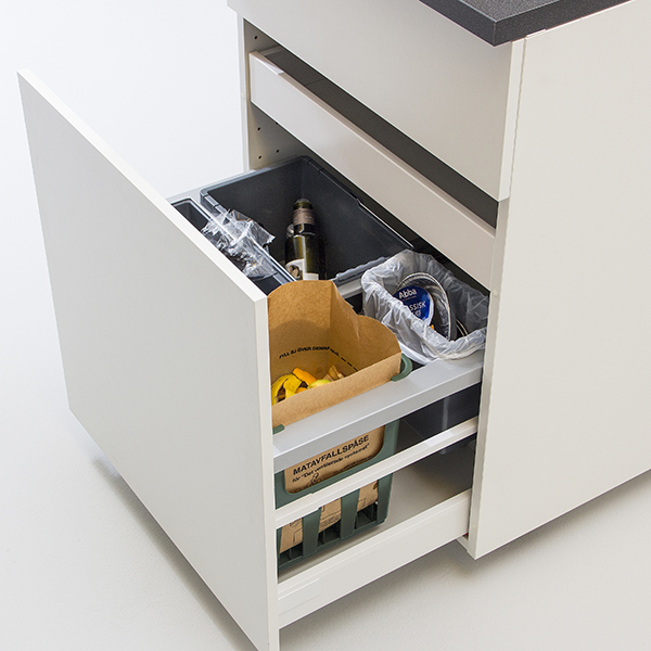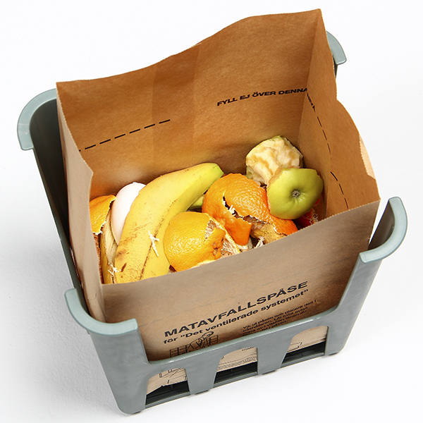 MatHilda matavfallskurv for papirpose er tilpasset de fleste kjøkkenskuffer. Ved å bruke papirpose tørker matavfallet ut i stedet for at det råtner. Fukten i matavfallet forsvinner, dårlig lukt reduseres og avfallet minsker i vekt med opptil 20 % på 3 dager. Papirposen er helt nedbrytningsbar. Kurven er ventilert slik at luft tilkommer og man unngår lukt og at posen blir bløt og vanskelig å håndtere.