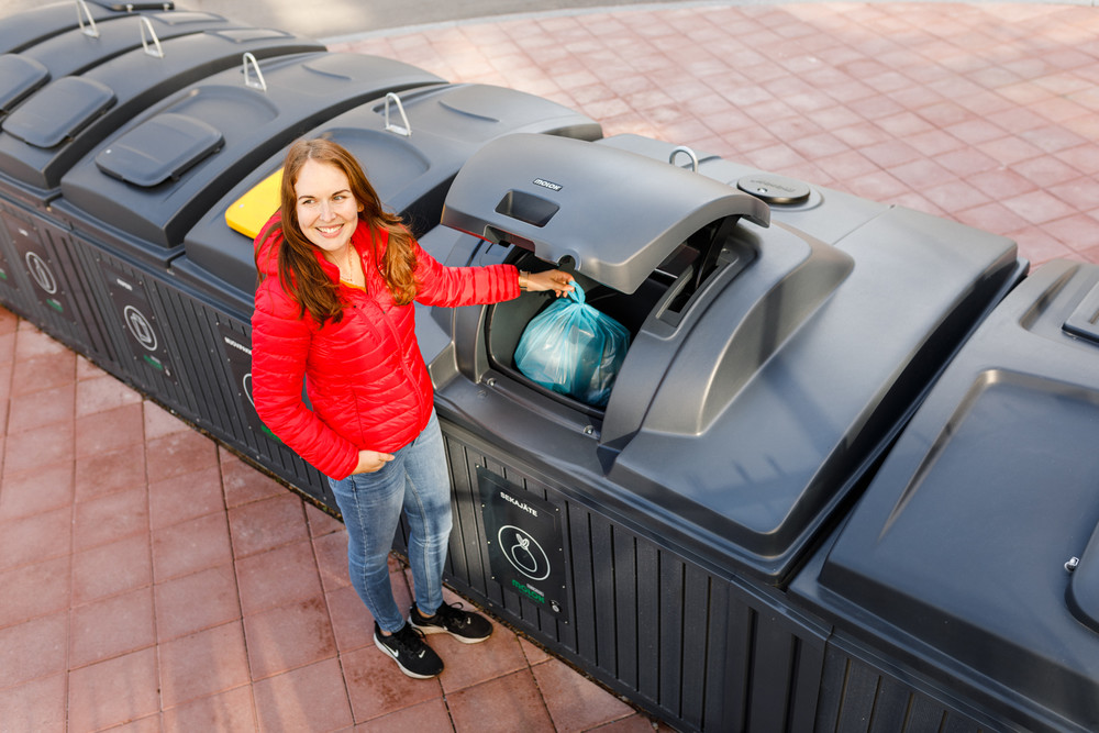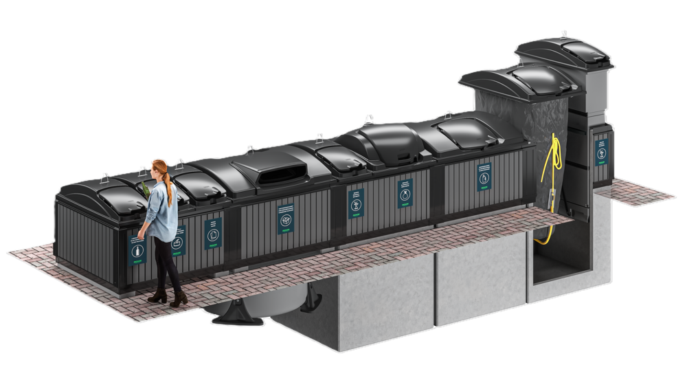 Molok Domino Plus kan samle inn 1-4 forskjellige avfallstyper i en og samme beholder. Ytterbeholder i HDPE.