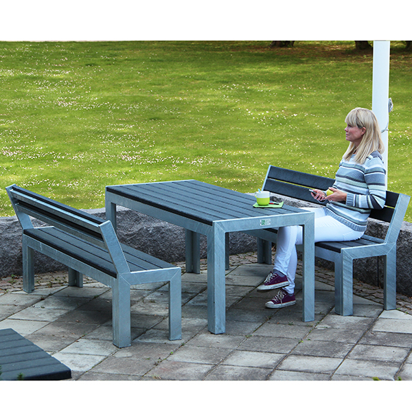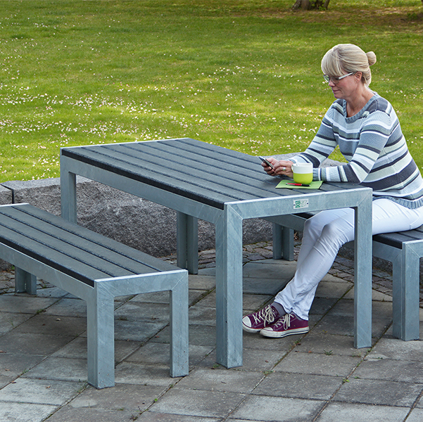 I vårt sortiment finner du flere modeller parkbenker og sittegrupper. Alle har det til felles at de er utviklet i solid stål/aluminiumskvalitet og profiler i miljøvennlig gjenvunnet plast. Profilene tørker raskt etter regn og behøver ikke å males eller oljes. Møblene kan stå ute hele året. De er i tillegg solide og har høy vekt. For ekstra feste mot underlaget leveres festebolter som tilbehør.