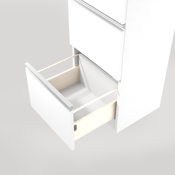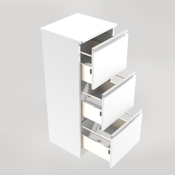 Oppbevaringsmøbel i samme stil som våre andre kildesorteringsskap. Tre skuffer, type “kjøkkenskuff”.