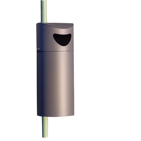 Robust avfallsbeholder for utendørs bruk som monteres på stolpe/vegg. 60 liter.
