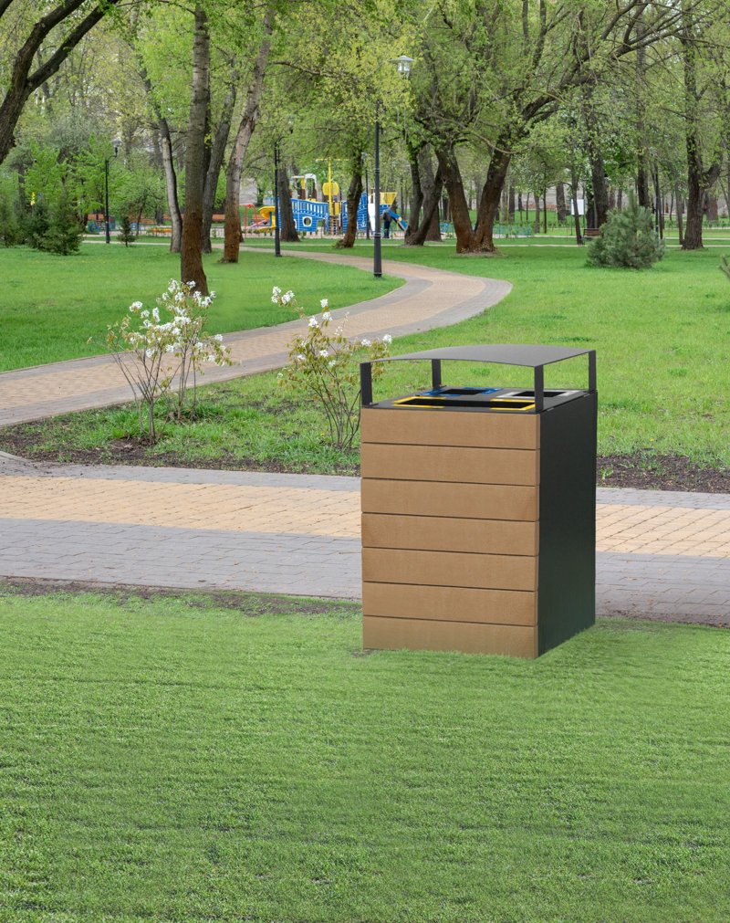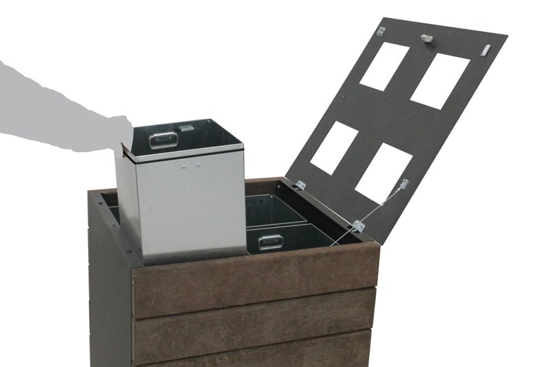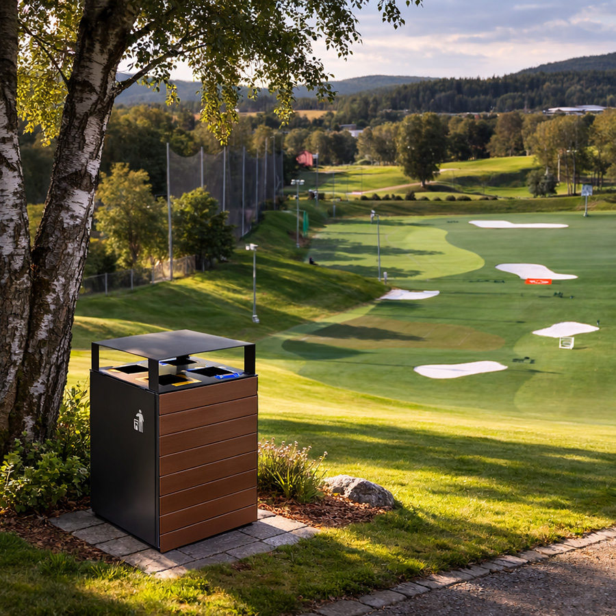 Beholderen kombinerer funksjonalitet, lang levetid og et moderne uttrykk – og kan tilpasses ulike miljøer med flere materialvalg, inkludert resirkulert plast, kompositt og tre. leveres med sorteringsmerker etter norsk standard.
