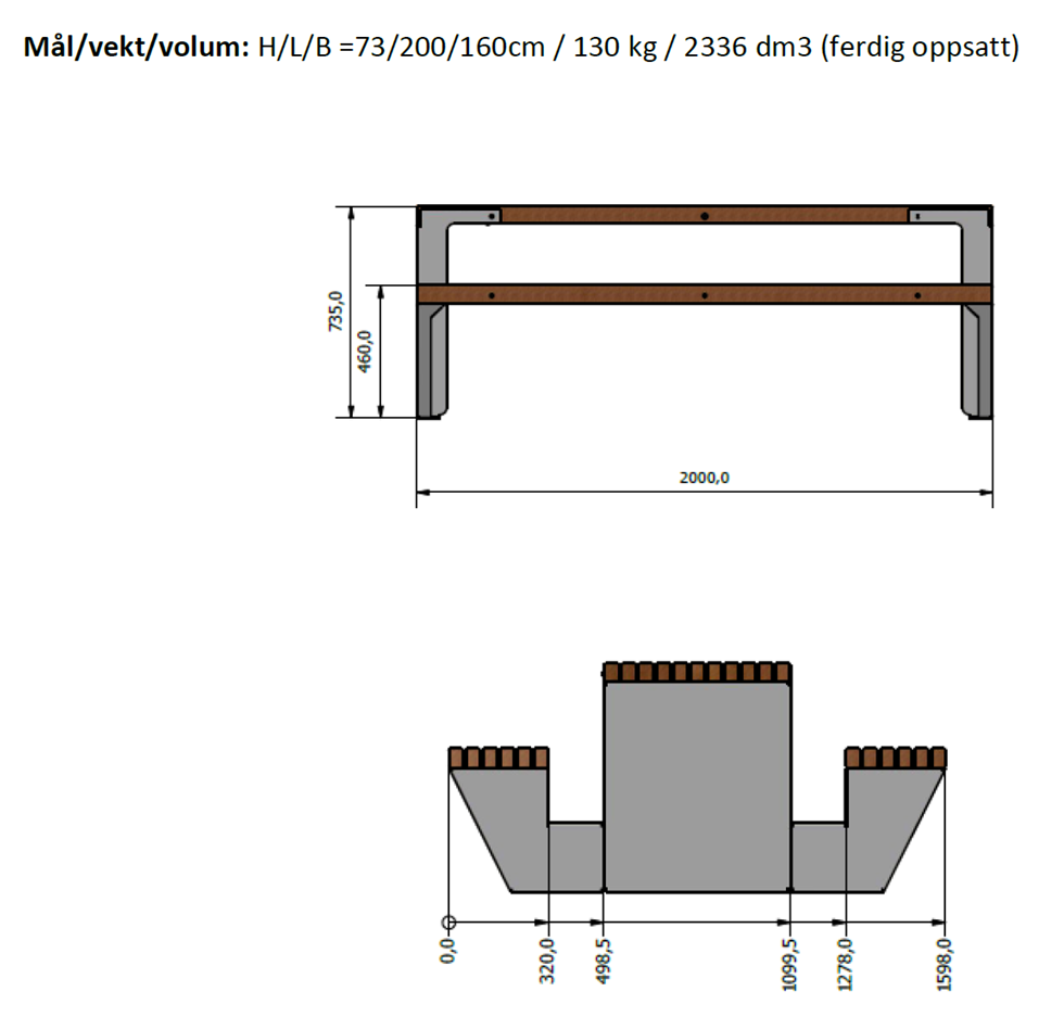 Solid norskprodusert bordbenk med unikt design. Kvalitetsmøbler for lang levetid.