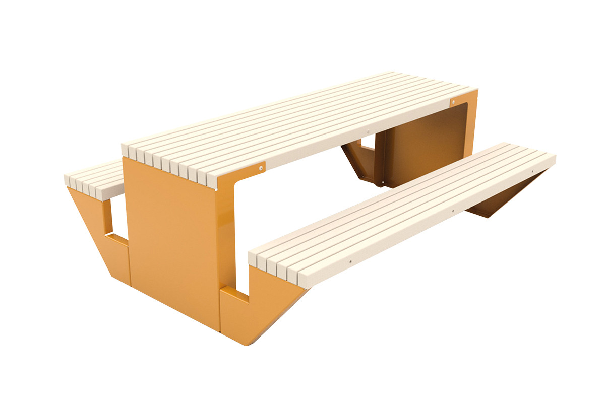 Enkel montering av benkene til bordet. Leveres i 3 deler. Rast bør stå på hardt og plant underlag, og kan skrues fast. Materialene er resirkulerbare og tilfredsstiller alle krav i henhold til Svanemerkets krav til materialer.