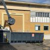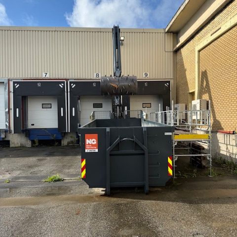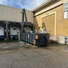 Stasjonær spesialmaskin for komprimering av store volumer avfall direkte i åpne containere.