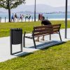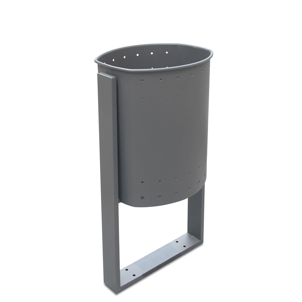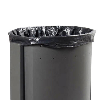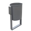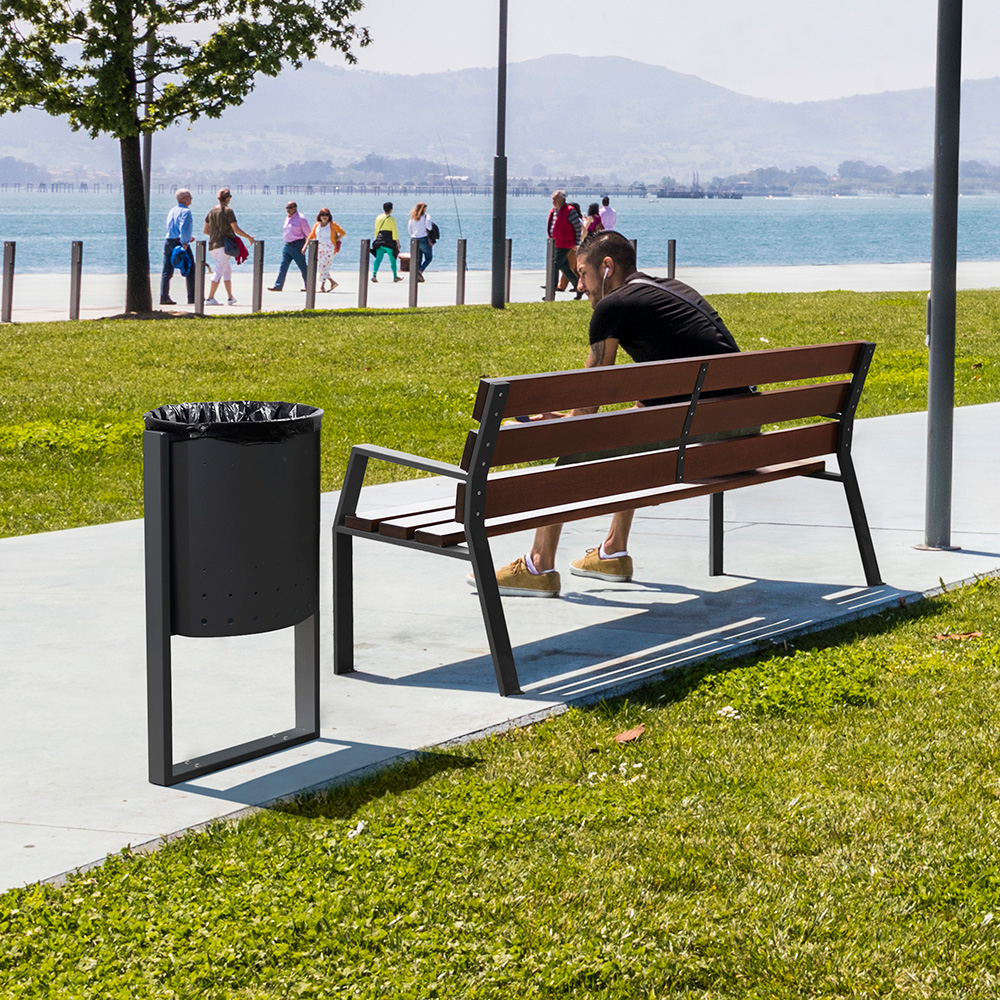 Stilig avfallsbeholder for det offentlige rom som leveres med og uten regntopp. Enkel tømming med en svingbar funksjon. 60 liter.