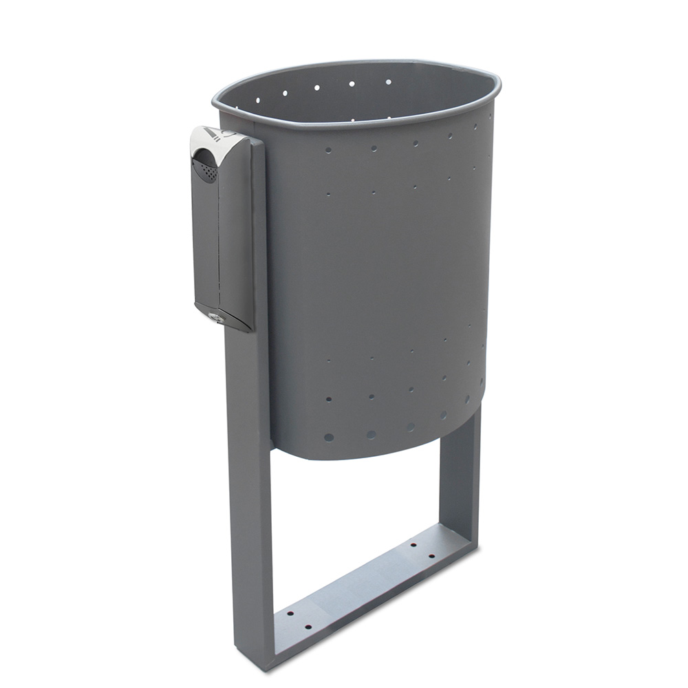 Avfallsbeholderen har enkel tømming ved at beholderen kan svinges rundt. Låses på plass igjen automatisk. Plastsekken festes rundt beholderen. Om askebeger ønskes kan type «Kalzen» monteres på siden av beholder. Se bilde.
