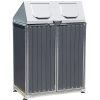 Sekkeskap med innkasttopp – to/tre innkast for sekker à 240 liter. Kledd med panel i komposittmateriale eller trykkimpregnert trepanel. Innkasttopp og luker i pulverlakkert stål. Innvendig bekledt med alusinkplater. En klemring sikrer at sekken sitter på plass.