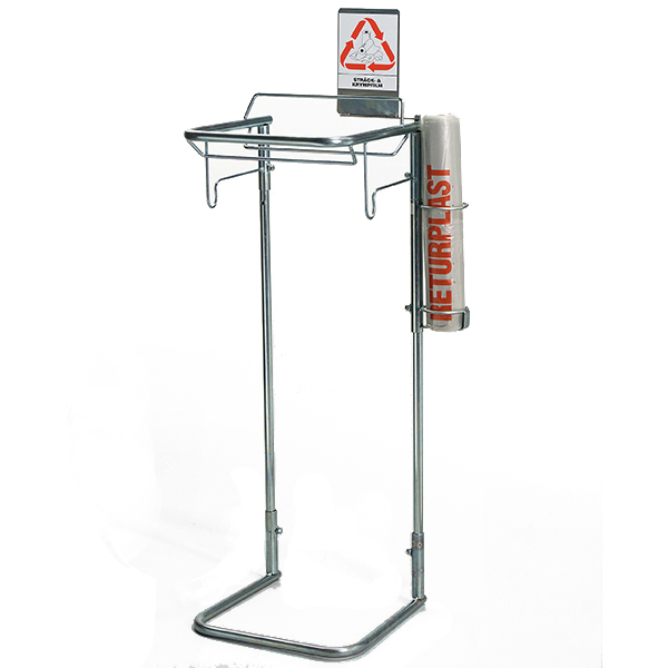 Som tilbehør kan leveres fraksjonsskilt og holder for sekkerull. Stativet kan også ettermonteres med hjul.