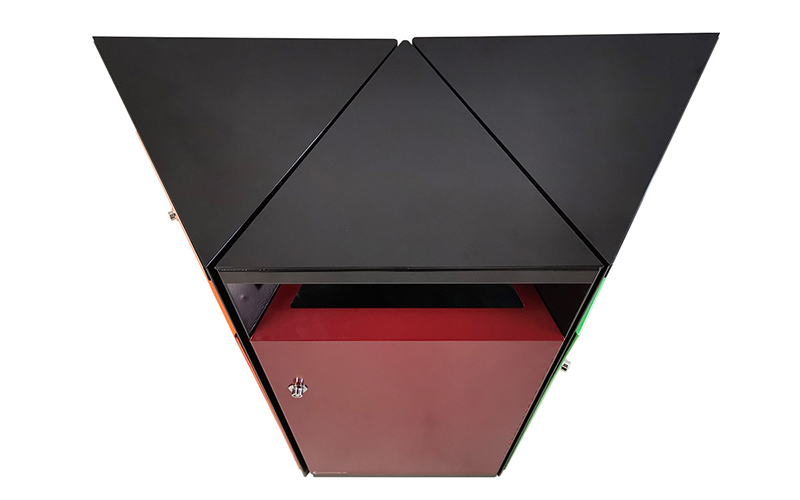 Sinus Kube er en pulverlakkert avfallsbeholder i stål. Sinus Kube kan stå inntil vegg, eller frittstående i gruppe med flere om man ønsker det. Du kan fritt velge blant våre standardfarger eller du kan designe den med de fargene du ønsker mot pristillegg. Du kan f.eks velge to farger, én farge på beholderen og én på døren og frontlisten.