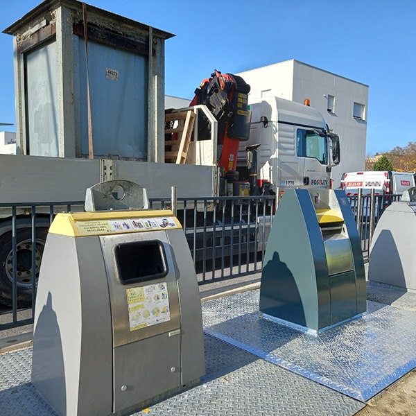 På Mortensrud i Oslo kommune, er nå to stk. nedgravde containere byttet med Cameleon. De tre containerne til høyre i bilde er eldre modeller. De to nye modellene til venstre er utstyrt med vår mest populære innkasttopp SULO Iceberg Max 3. I tillegg er det nytt løftesystem, sikkerhetsplattform og innvendig 5 m3 stålbeholder. Anlegget har fått en tidsriktig og moderne løsning som er både miljø- og investeringsvennlig og md forlenget levetid.