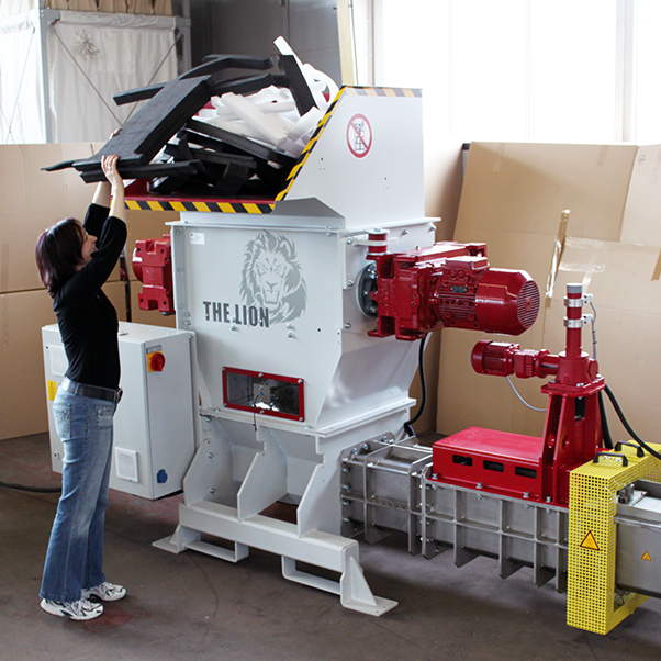 The Lion er perfekt der det oppstår relativt store mengder skumplast, hovedsakelig brukt til emballasje. For eksempel i større varehus for elektronikk og møbler. Den ekstreme reduksjonen i volum gjør det mulig å spare store beløp på lagring, renovasjon og transport. Skumplasten kan gjenvinnes som PS granulat av høy kvalitet og resirkuleres til bruk i plastdeler som CD-cover, kleshengere, listeverk og isolasjon.