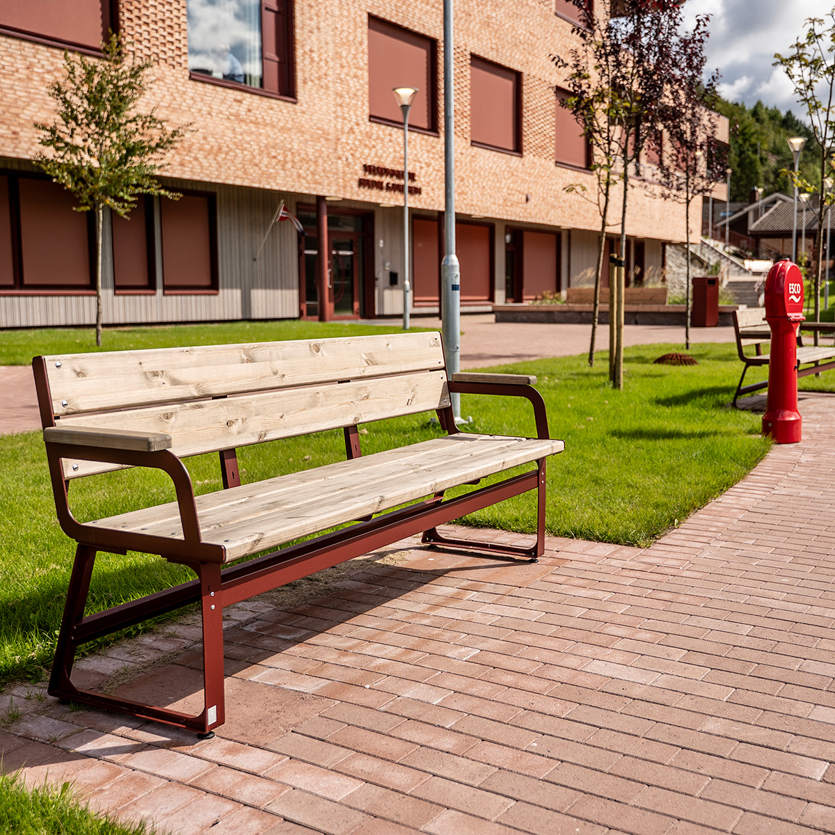 32981_Trend benk med rygg og armlener_RAL 8015 Røros Produkter