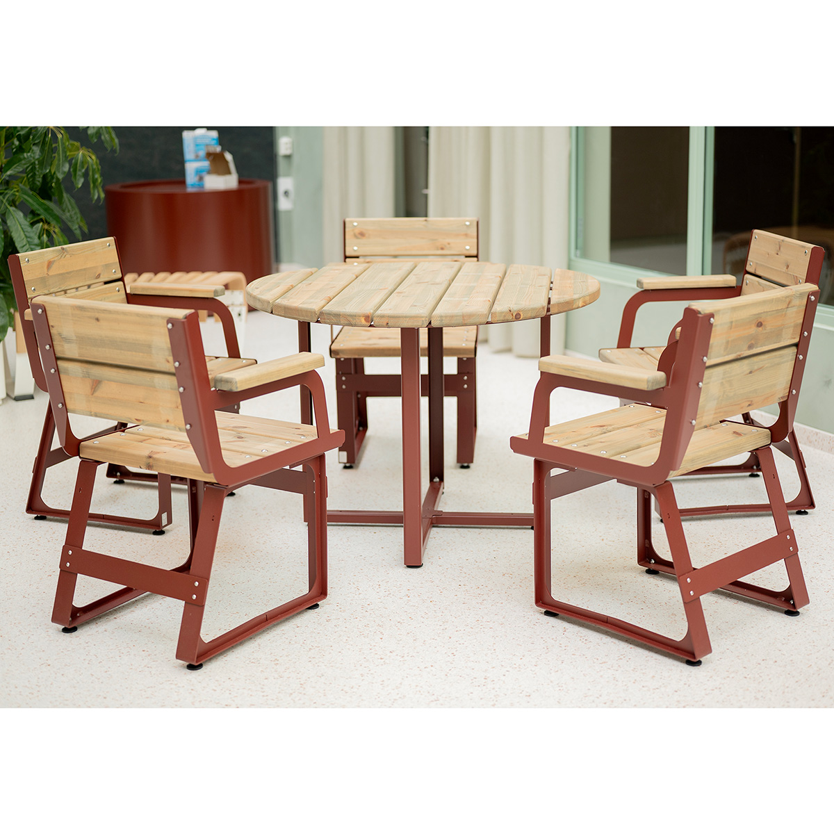 32992_92974_Trend rundt bord Ø105+stoler med armlener_RAL 8015 Røros Produkter