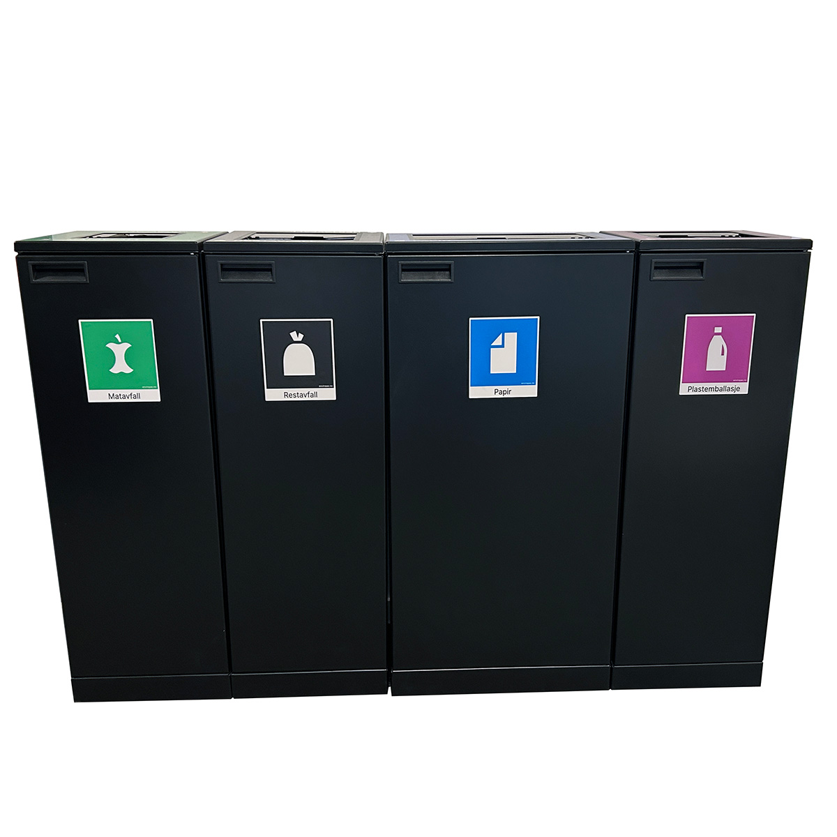 Standard TURIN leveres i farge sort med justerbare støtteben, toppinnkast, sekkholder, bakke i bunn for oppsamling av væske og stor innkaståpning. Sorteringsmerker tilkommer.