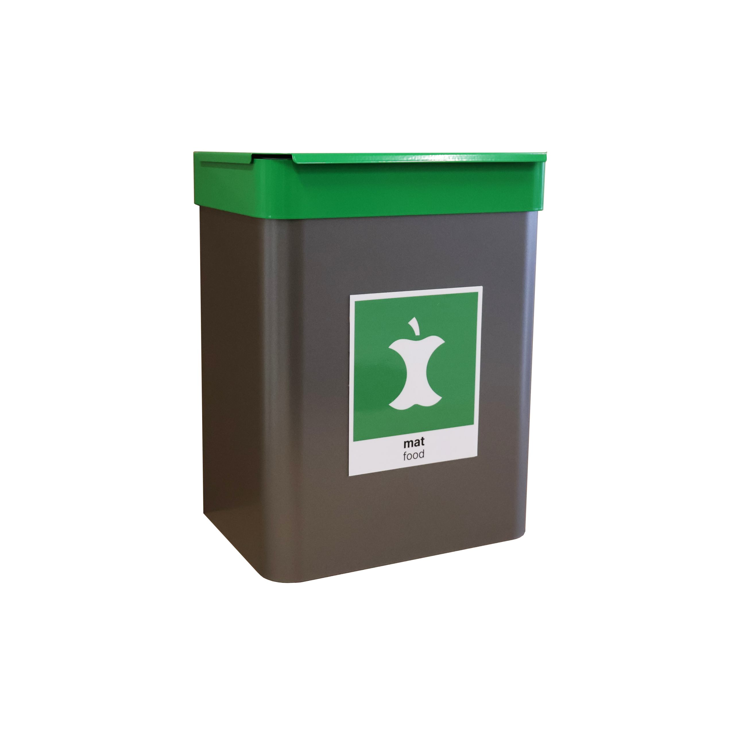 - Matavfall har lokk og inkluderer bøtte og bøttebrakett