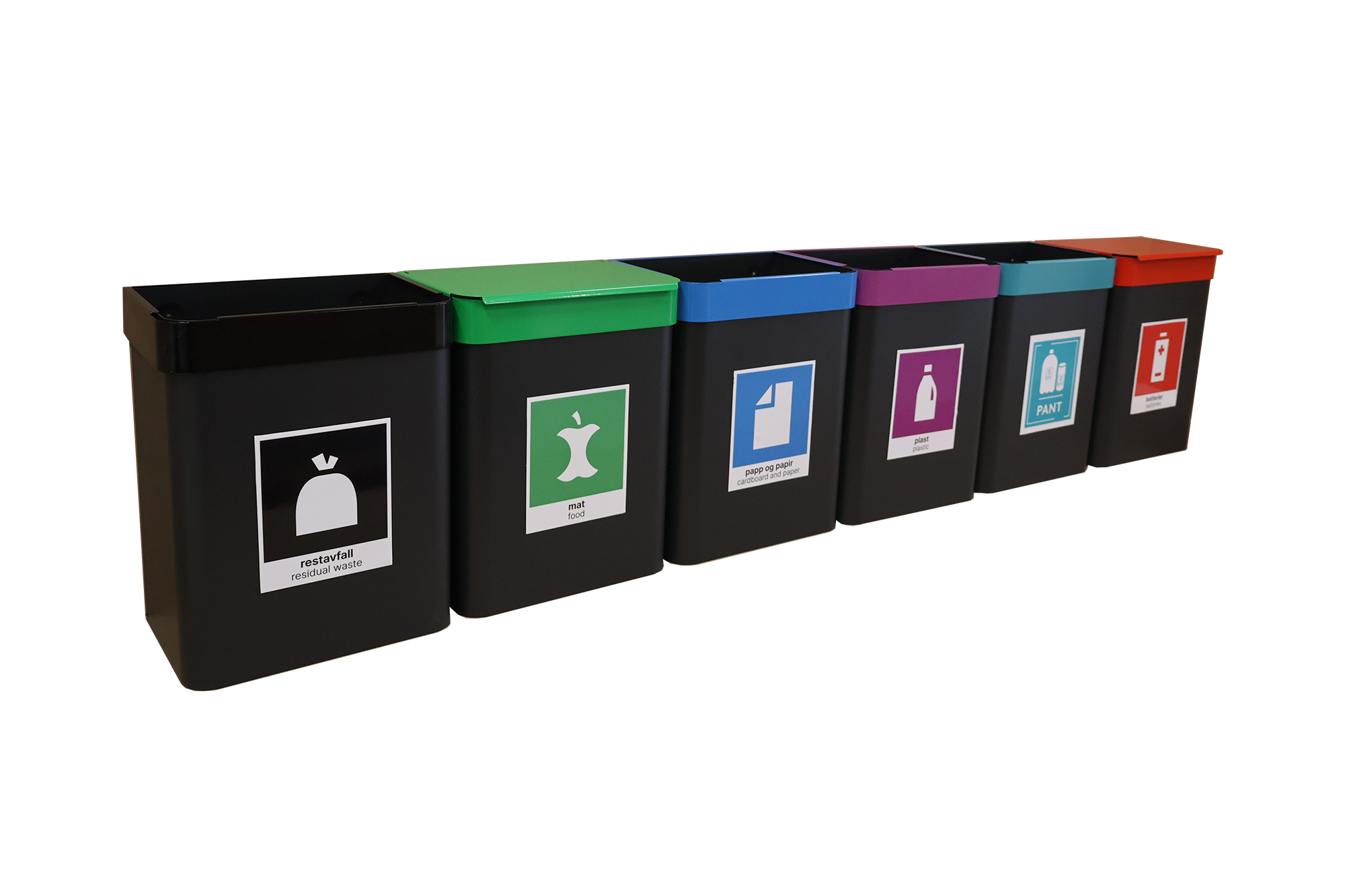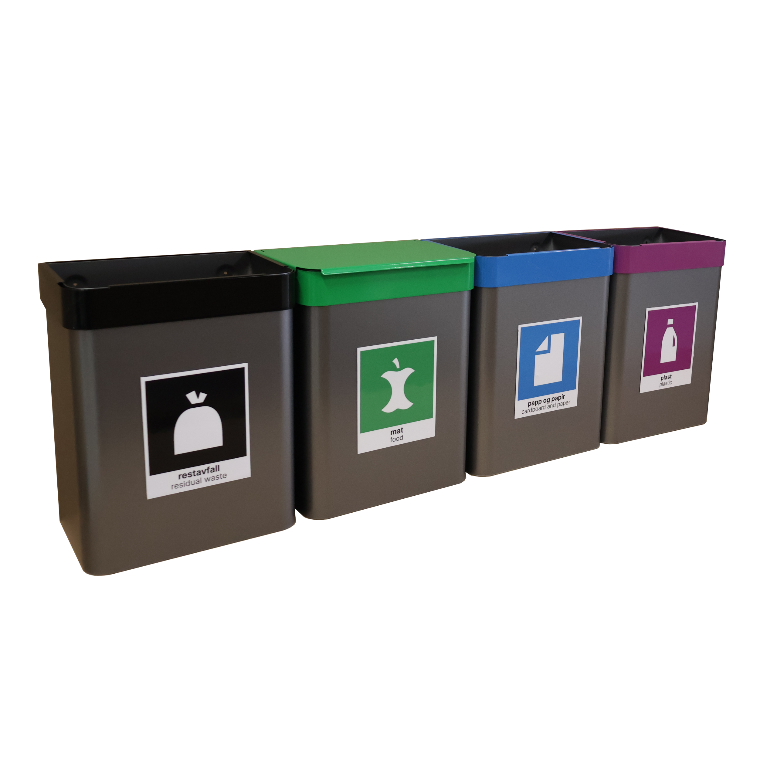 Urbanus avfallsbeholdere er alt du trenger til innendørs kildesortering av ordinært avfall. Monteres på vegg. Mye benyttet i barnehager, undervisningsbygg, møte- og hotellrom for mindre mengder avfall.