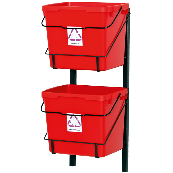 Kan monteres både vertikalt og horisontalt. Består av stativ + 2 x bokser på 25 liter.